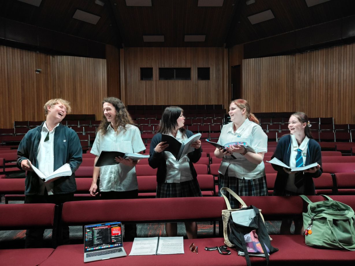 Our musical directors, Jessie and Mr Cheyne, have been teaching us the very hard timing of the Into the Woods songs. Some of the songs are very hard to perfect, and the cast has been doing so well, listening and learning the lyrics and timing.