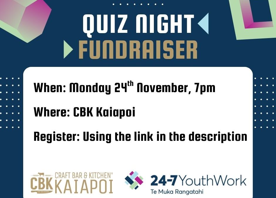 CBK Kaiapoi is hosting a quiz night fundraiser for our youth worker team (Caleb and Holly). All funds raised on the night will go towards sustaining the 24-7 YouthWork at Kaiapoi High School.